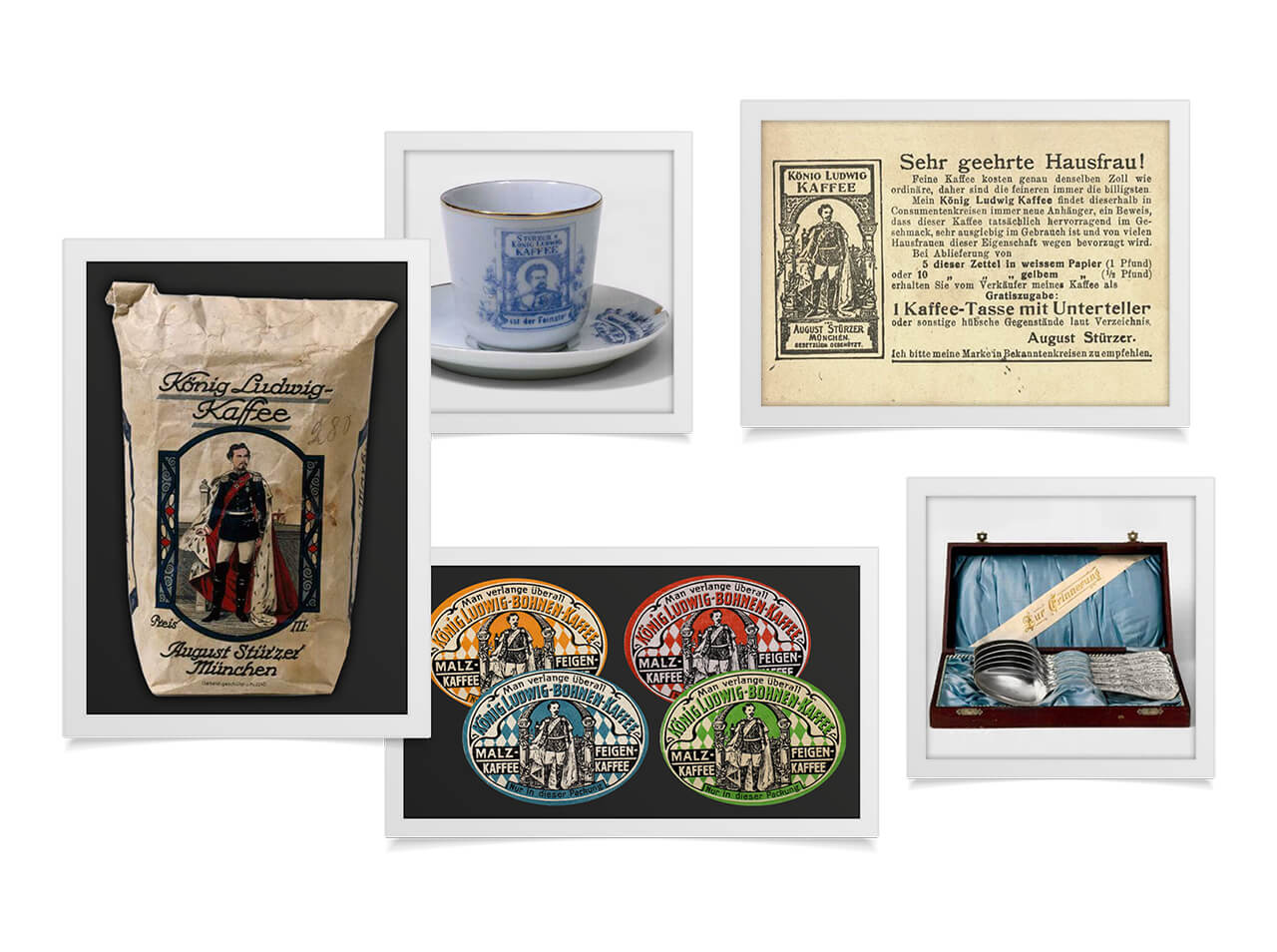 Diesem Qualitätsanspruch wird auch heute im Hause Wittelsbach stets Rechnung getragen – mit höchster Qualität, handwerklicher Perfektion und einzigartigen Geschmackserlebnissen. Bei Bier oder Wein, Brot, Fleisch, Käse oder Kaffee: Diesem Anspruch werden alle Eigenmarken gerecht. So mundet und duftet auch der Kaffee seit 1899 einfach nur königlich. Am besten aus einer handgefertigten, zerbrechlichen Schönheit aus der Nymphenburger Porzellanmanufaktur – edel und stilbewusst, wie einst der König selbst. Etwas weniger Haute Couture, aber ebenso raffiniert ist das passende Kaffeeservice, signiert von keinem Geringeren als dem König selbst.
